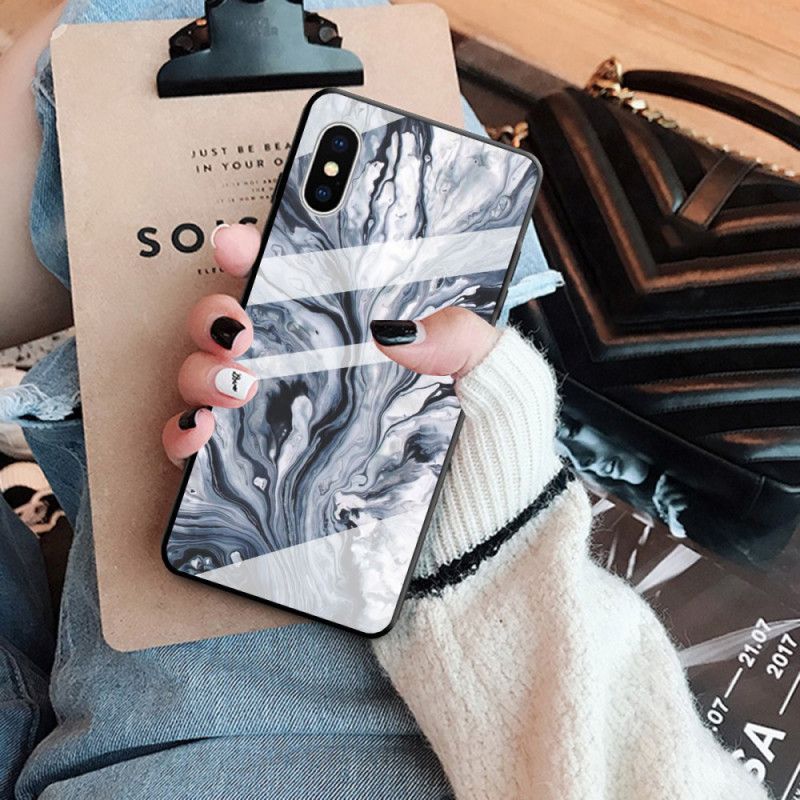 Cover for iPhone X Sort Hærdet Marmorglas