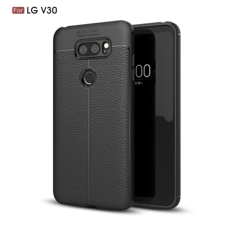 Cover for LG V30 Sort Dobbelt Line Lychee Læder Effekt