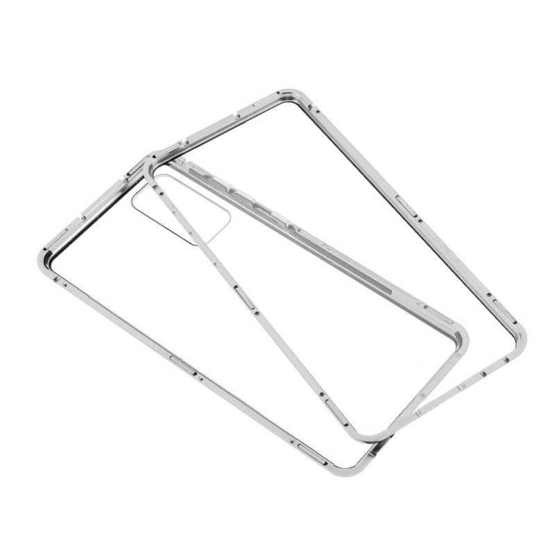 Aftageligt glasafskærmning hærdet (til bagsiden) med metalkanter: en enkel løsning for at beskytte din Samsung Galaxy S20 FE.