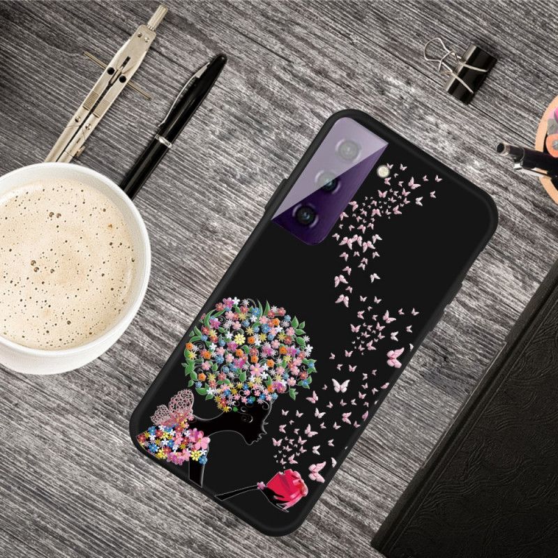 Cover for Samsung Galaxy S21 5G Kvinde Med Et Blomstret Hoved