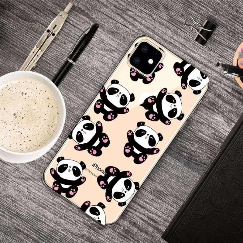 Top Pandas Fun-etui, i gennemsigtig, fleksibel silikone, fastgør iPhone 11, samtidig med at det oprindelige design bevares.