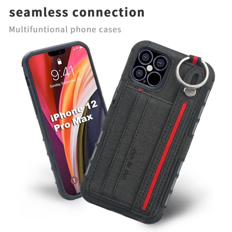 - Kortholder - Her er et fantastisk stofhus, designet af SHOUHUSHEN, som tilbyder adskillige kortholder og en rem til at bære iPhone 12 Pro Max i hånden.