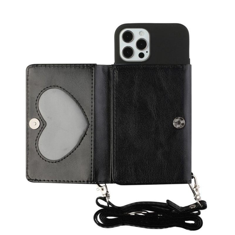 Cover iPhone 12 / 12 Pro Sort Mobilcover Kortholder Skulderrem