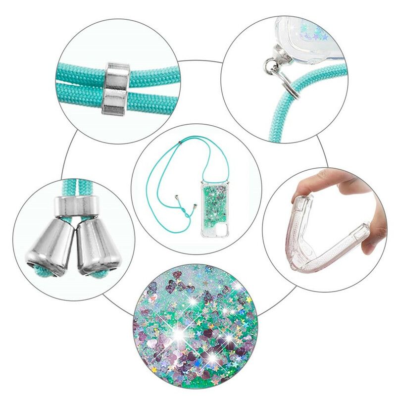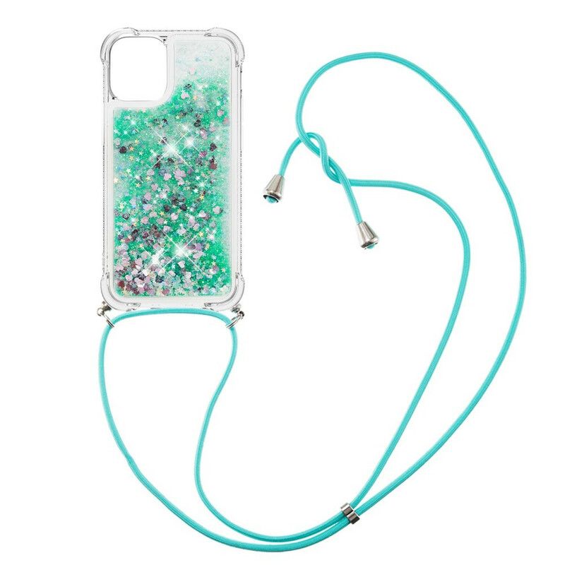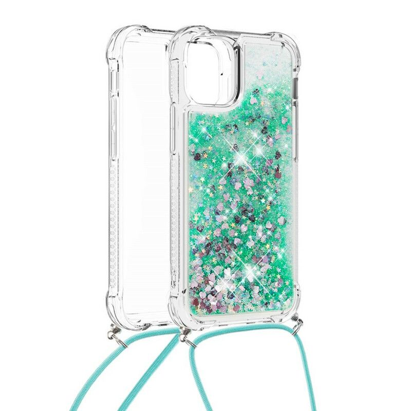 Dette silikonetui dekoreret med glitter kommer med en strop til at bære din iPhone 13 Mini, som du ønsker.