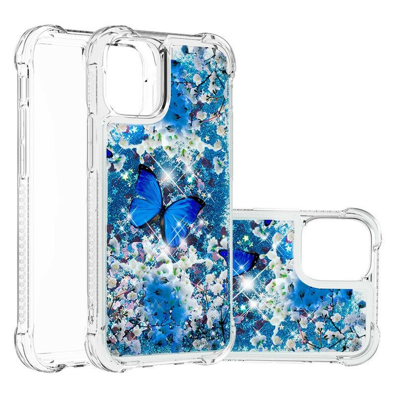 Cover iPhone 13 Pro Max Blå Glitter Sommerfugle