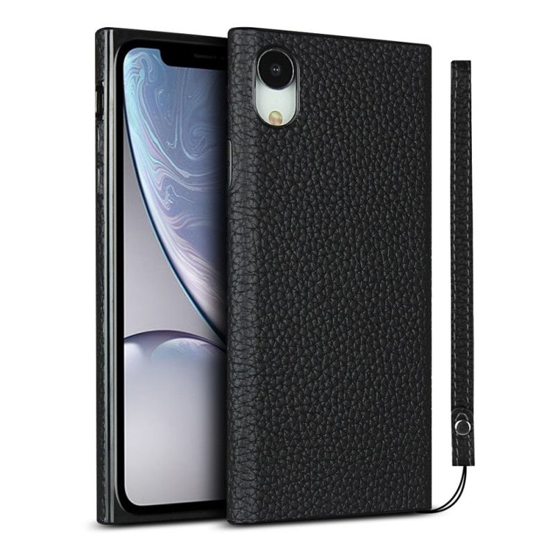 En fremragende ægte lychee-læderetui med en rem til elegant at sikre iPhone XR.