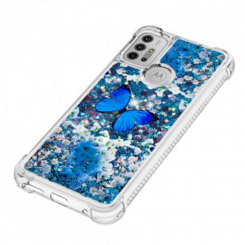 Cover Moto G30 / G10 Blå Glitter Sommerfugle