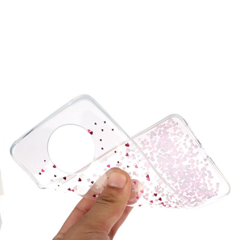 En gennemsigtig skal, hvorpå der er tegnet flere røde hjerter, der smelter sammen med de fine kurver på din OnePlus 7T.