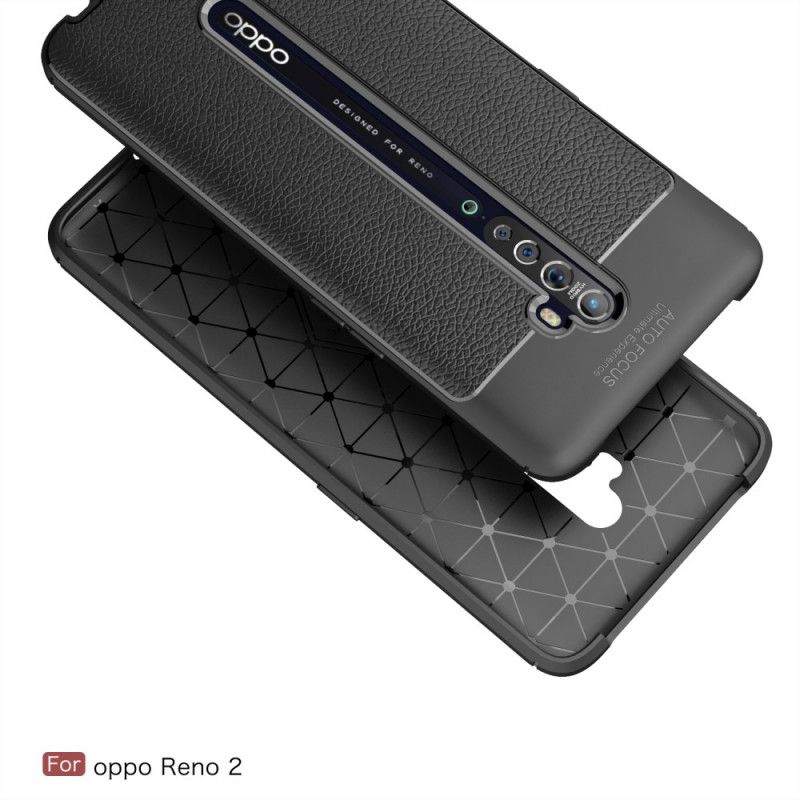 Cover Oppo Reno 2 Sort Dobbelt Line Lychee Læder Effekt