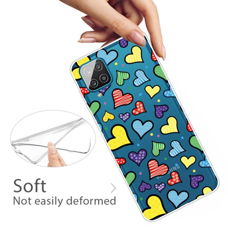 Cover Samsung Galaxy A12 Flerfarvede Hjerter Original