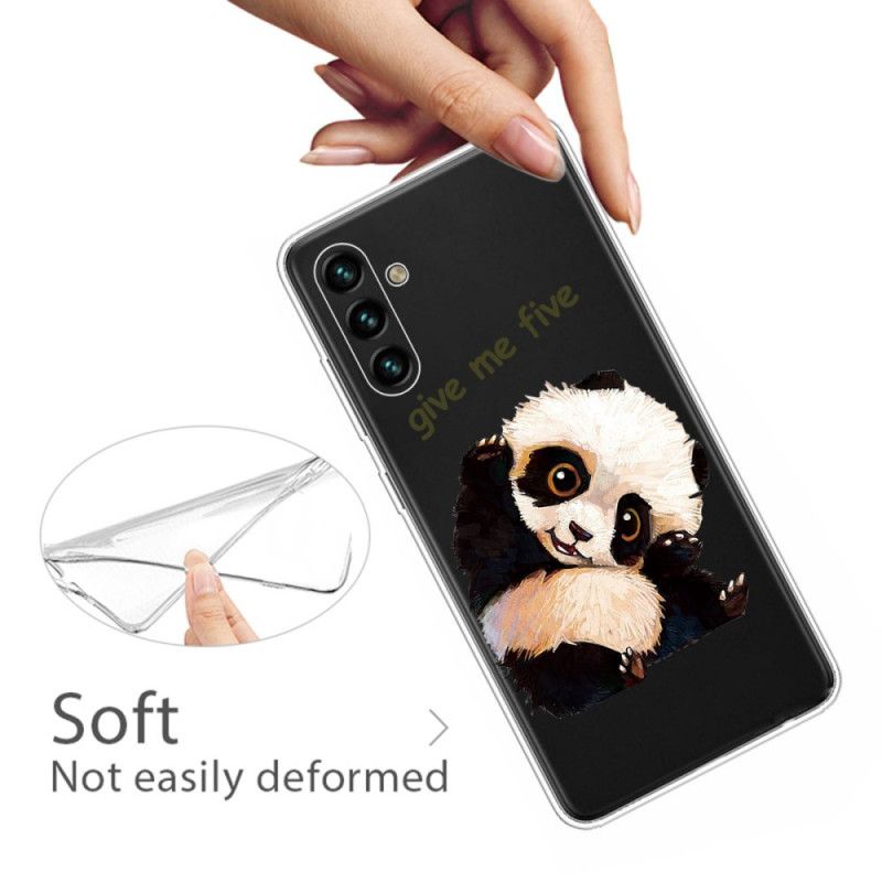 Det gennemsigtige Panda Give Me Five-cover holder Samsung Galaxy A13 5G fint fast og giver den et personligt look.
