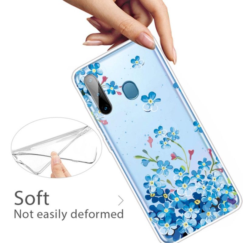Din Samsung Galaxy M11 er smukt beskyttet med denne fleksible silcione Blue Flowers-skal.