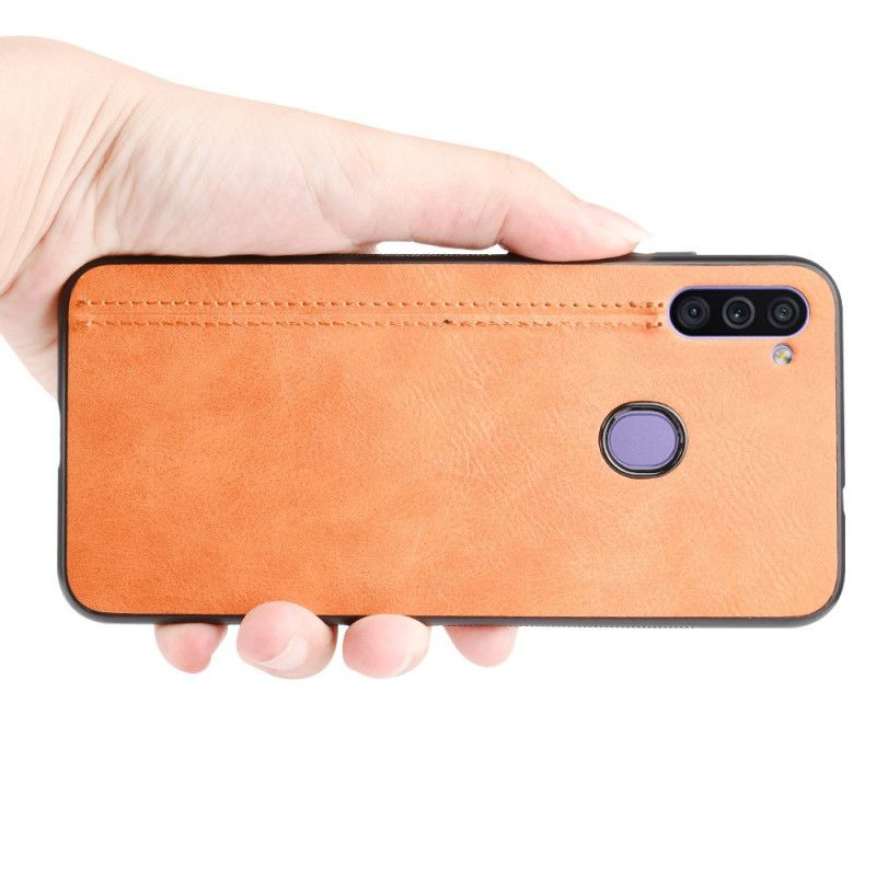 Din Samsung Galaxy M11, beskyttet af denne læder- og syede effektskal, har et ekstraordinært og personligt præg.