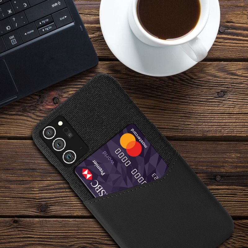 KSQ har designet denne storslåede skal i imiteret læder og stof med en integreret kortholder, især til Samsung Galaxy Note 20 Ultra.