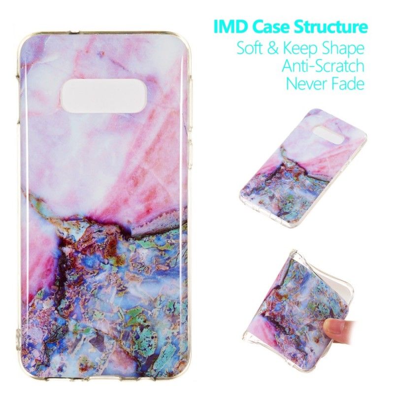 Én elegant etui med flerfarvet marmorudseende, specielt designet til din Samsung Galaxy S10e.