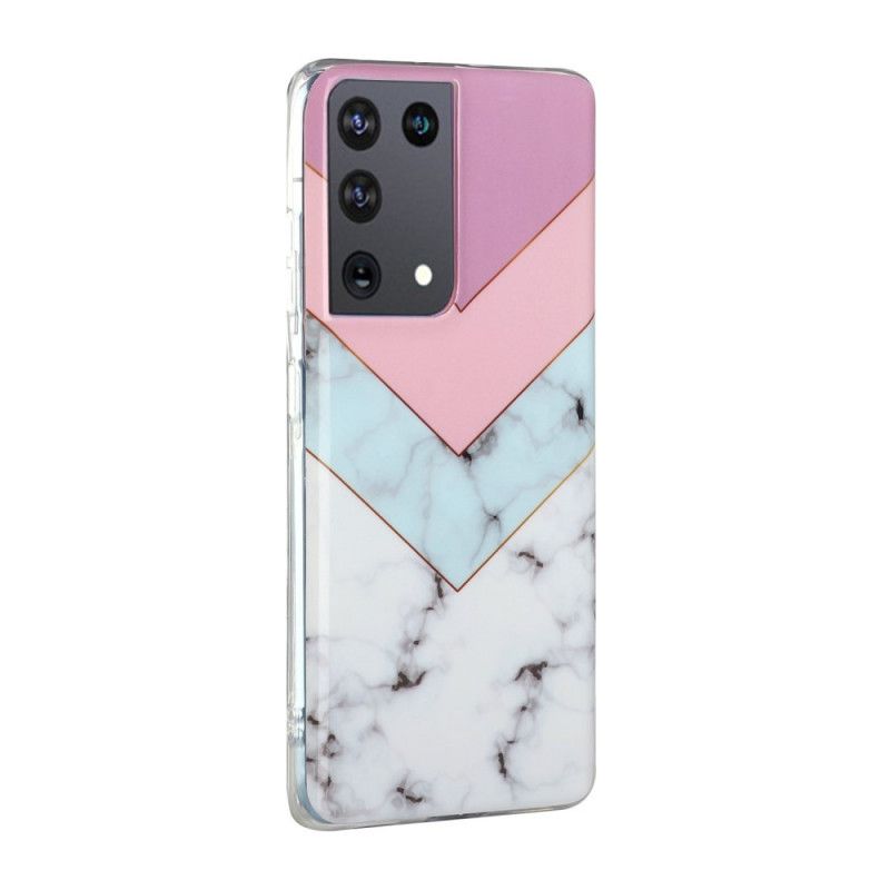 En glamourøs farvet geometrisk skal med et marmorudseende, specielt designet til din Samsung Galaxy S21 Ultra 5G.