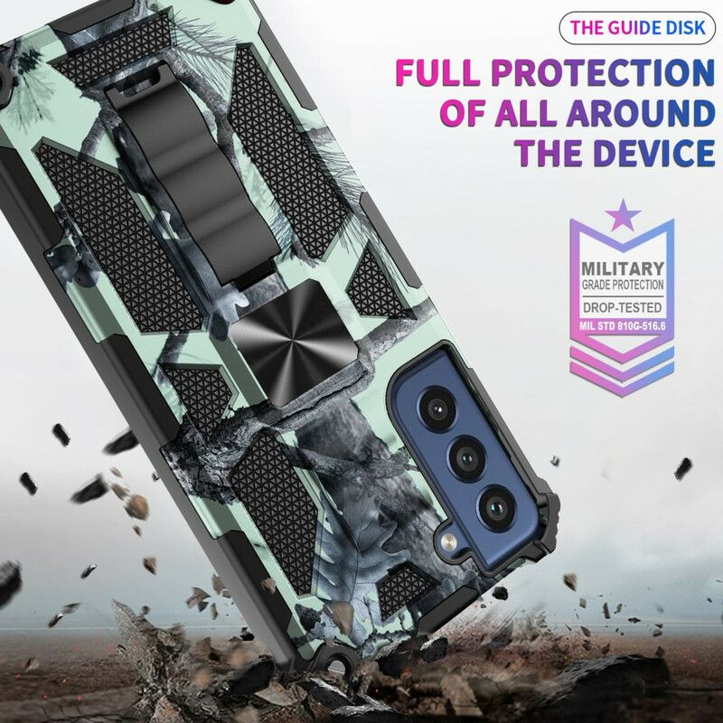 Et ultra-resistent Hybrid Camouflage cover, der kommer med en aftagelig holder til at sikre din Samsung Galaxy S21 FE.