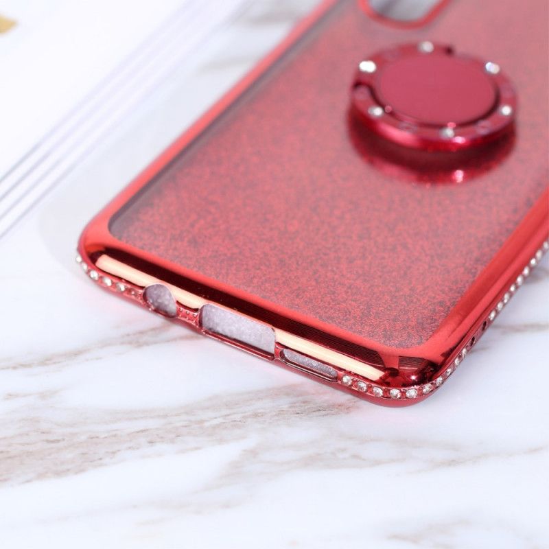 Cover Xiaomi Mi Note 10 Lite Rød Pailletter Og Diamanter Ringstøtte Original