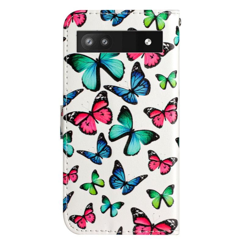 Flip Cover Google Pixel 7A Med Snor Sommerfugle På Flugt Med Rem