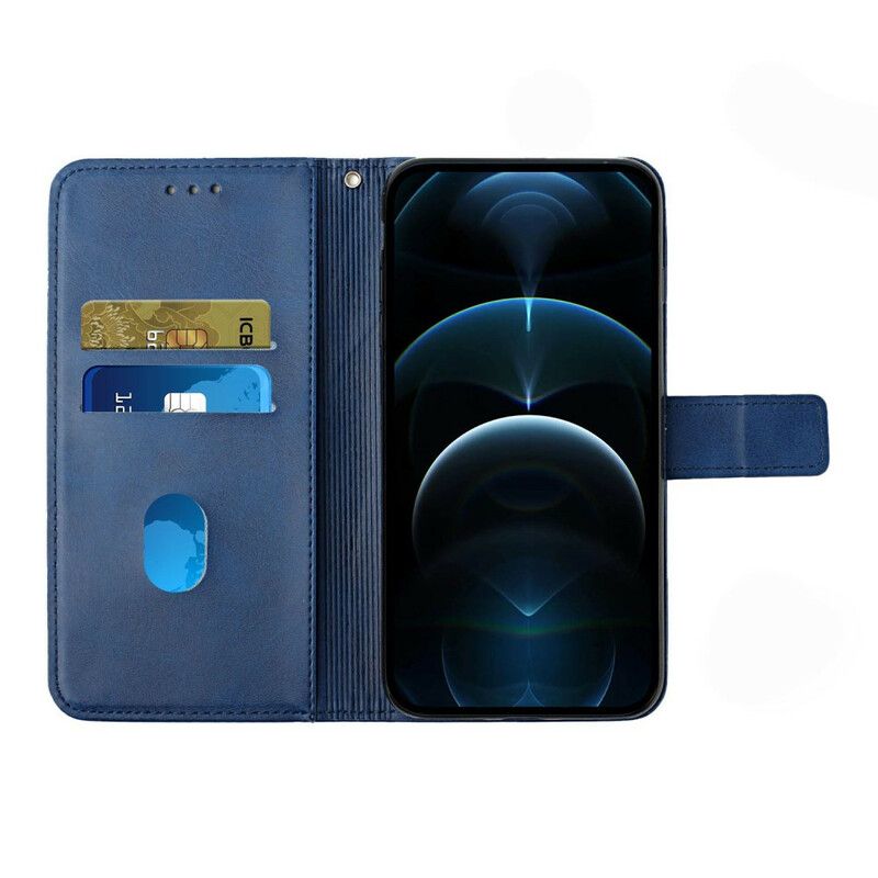 Det fungerer som pung og håndfrit stativ.- Designcover i imiteret læder