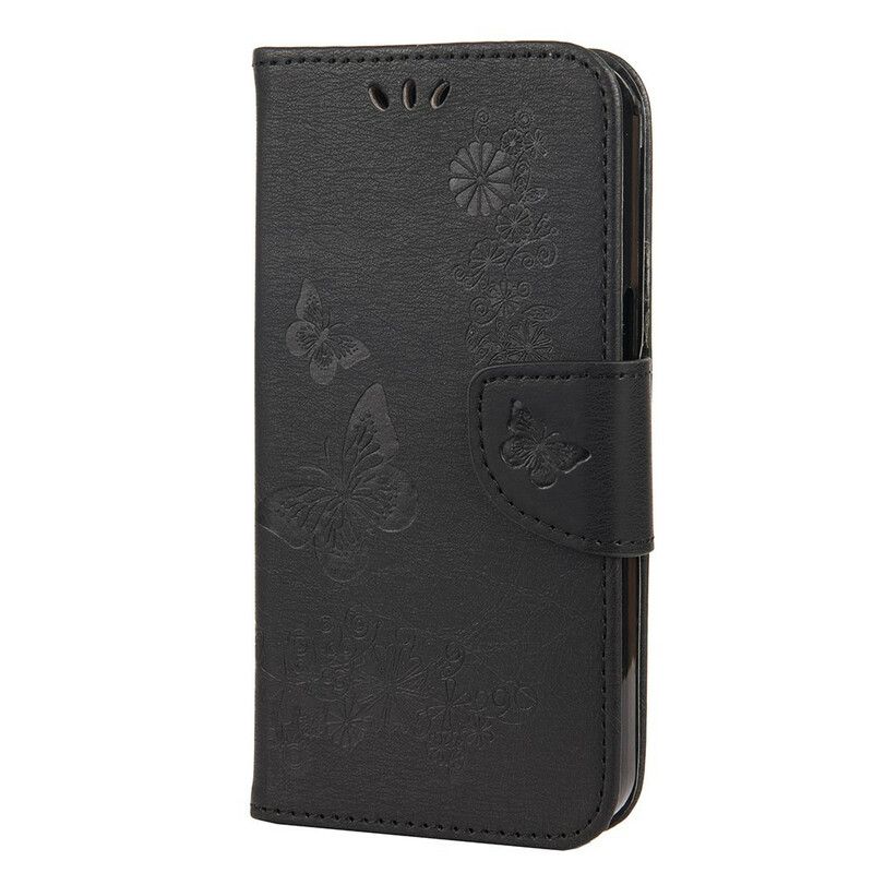 Din iPhone 13 er beskyttet som en pung med dette imiterede lædercover fyldt med smukke sommerfugle, som kommer med en aftagelig rem.