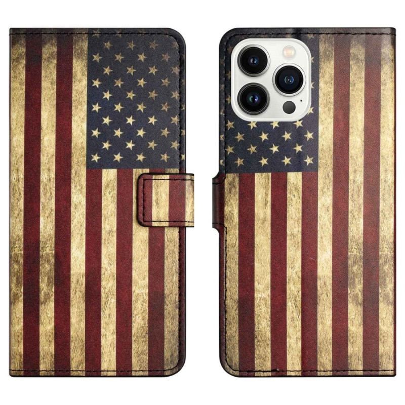 Flip Cover iPhone 14 Pro Vintage Amerikansk Flag