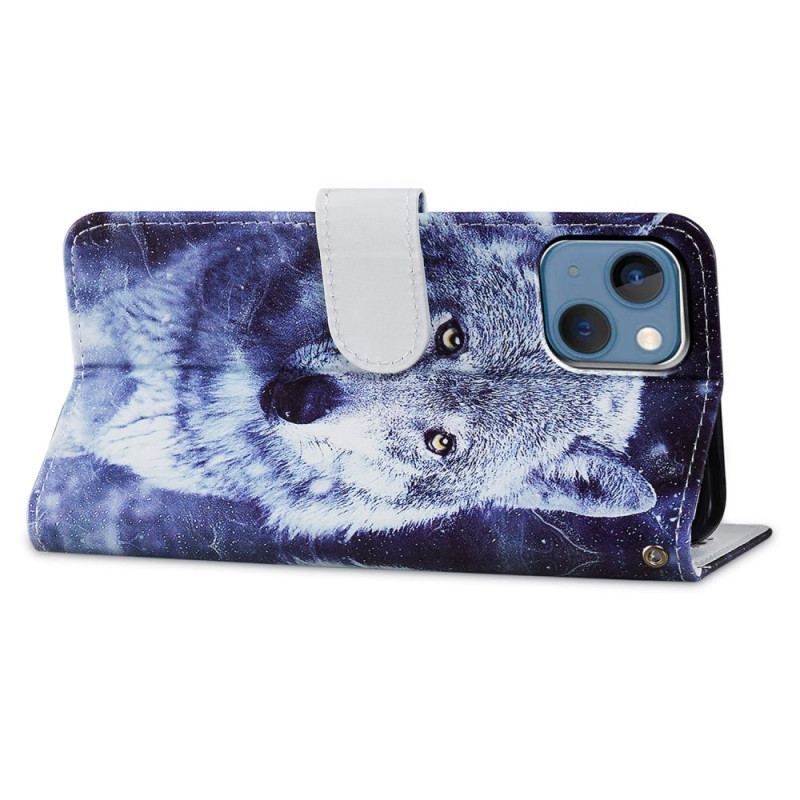 Flip Cover iPhone 15 Med Snor Hvid Ulv Med Rem
