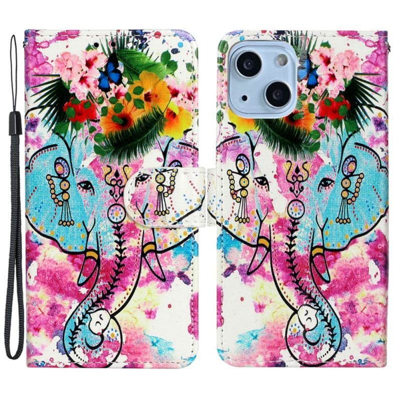 Flip Cover iPhone 15 Plus Med Snor Akvarelelefant Med Snor