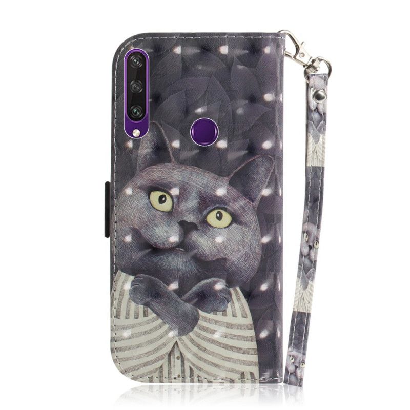 Flip Cover Læder for Huawei Y6p Grå Kat Med Rem