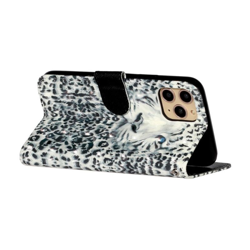 Flip Cover Læder for iPhone 11 Pro Max Sort Tigerlys Pletter Med Rem