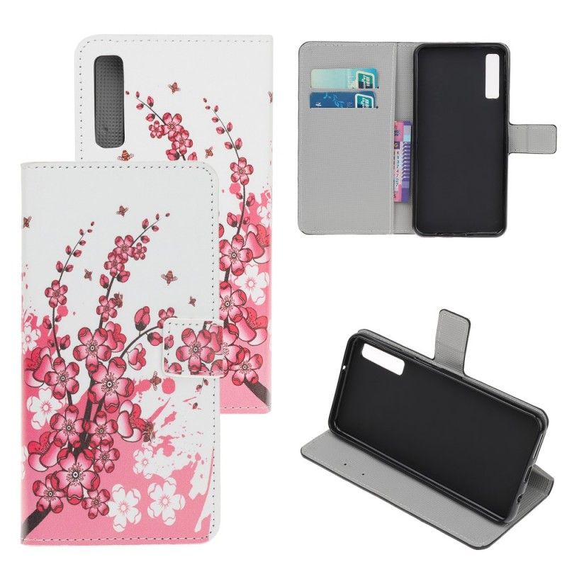 Flip Cover Læder for Samsung Galaxy A70 Magenta Tropiske Blomster