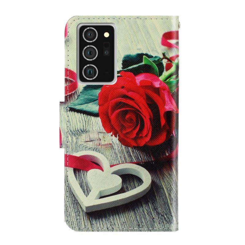 Flip Cover Læder for Samsung Galaxy Note 20 Romantisk Rose Med Rem