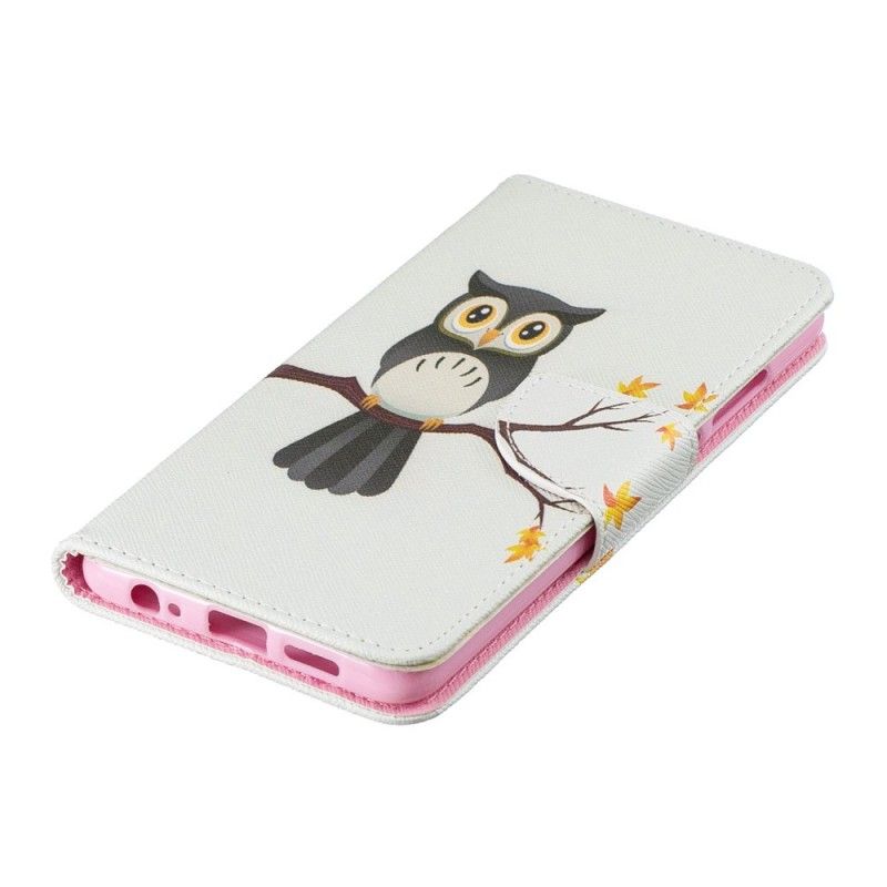 Flip Cover Læder Huawei P30 Ugle. Der Ligger På Grenen