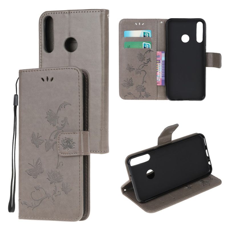 Flip Cover Læder Huawei P40 Lite E / Y7p Grå Fortryllede Sommerfugle