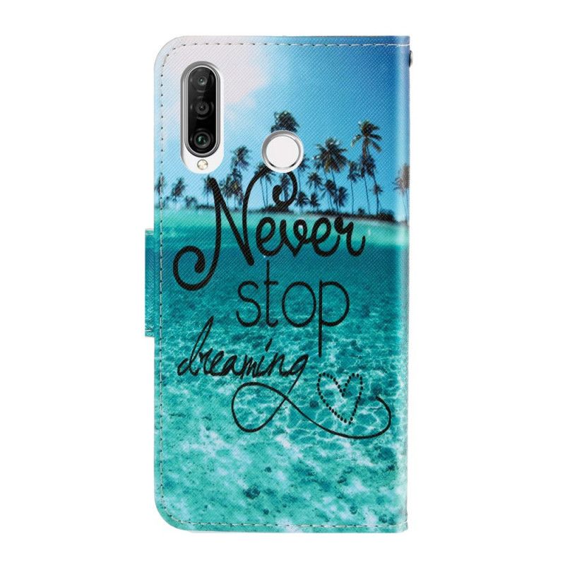 Flip Cover Læder Huawei Y6p Hold Aldrig Op Med At Drømme Marine Med Rem