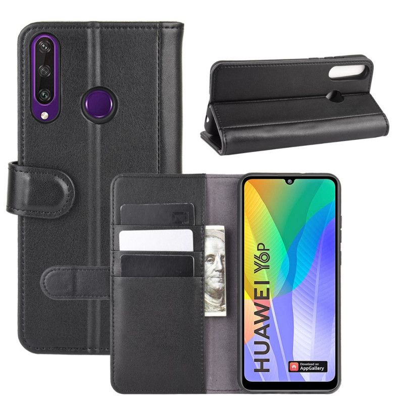 Flip Cover Læder Huawei Y6p Sort Ægte Læder