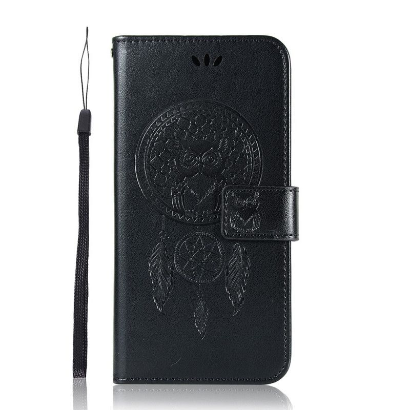 Flip Cover Læder Huawei Y6p Sort Drømfanger Til Ugle I Lædereffekt