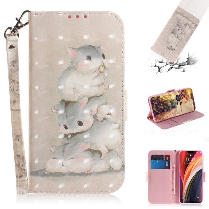 Flip Cover Læder iPhone 12 Pro Max Hamstere Med Rem Beskyttelse