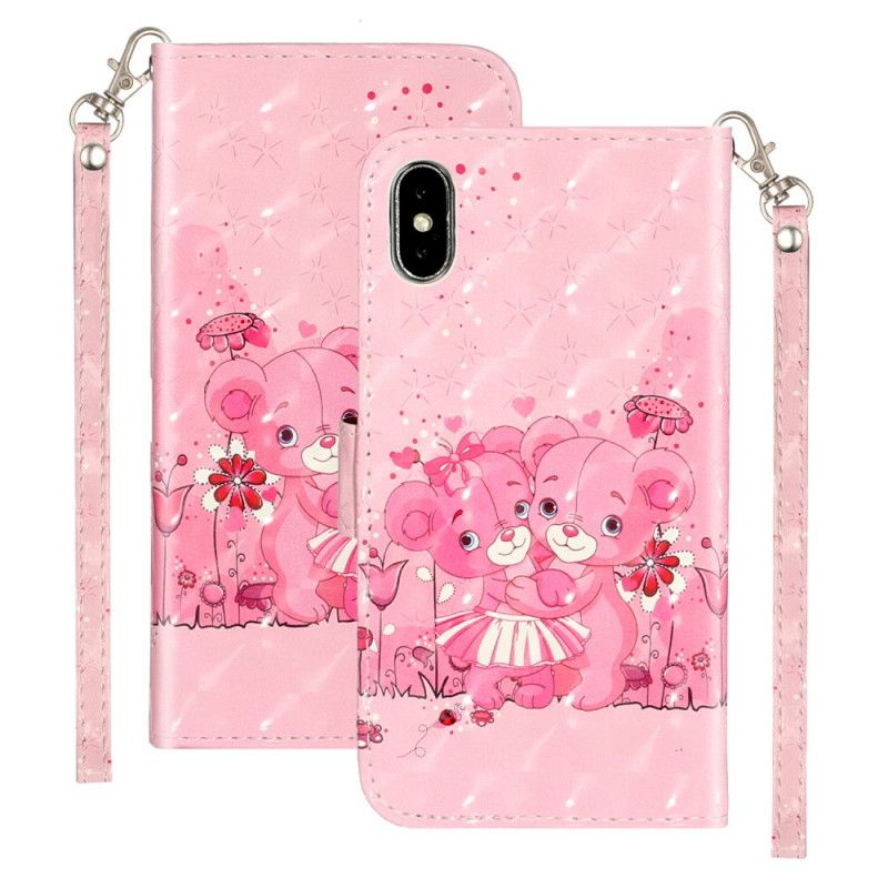 Flip Cover Læder iPhone X Bamser Lyse Pletter Med Rem