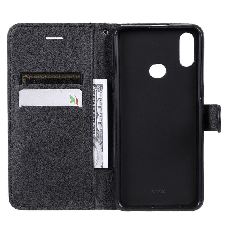Flip Cover Læder Samsung Galaxy A10s Sort Lædereffekt Med Rem