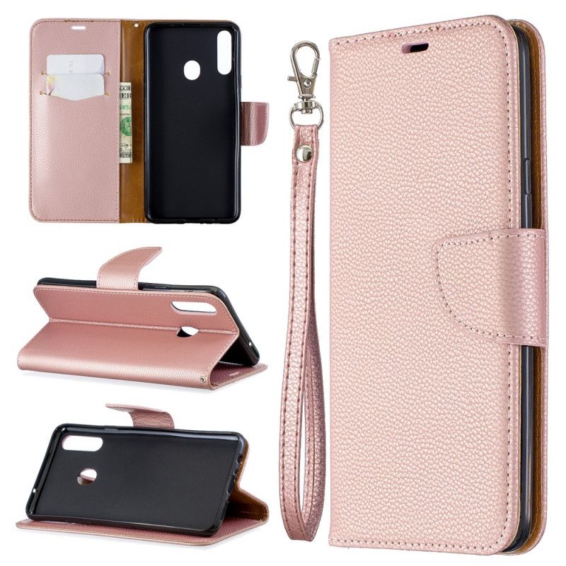 Den skrå flap-lychee-kunstlæderetui er den ideelle beskyttelse til din Samsung Galaxy A20s.