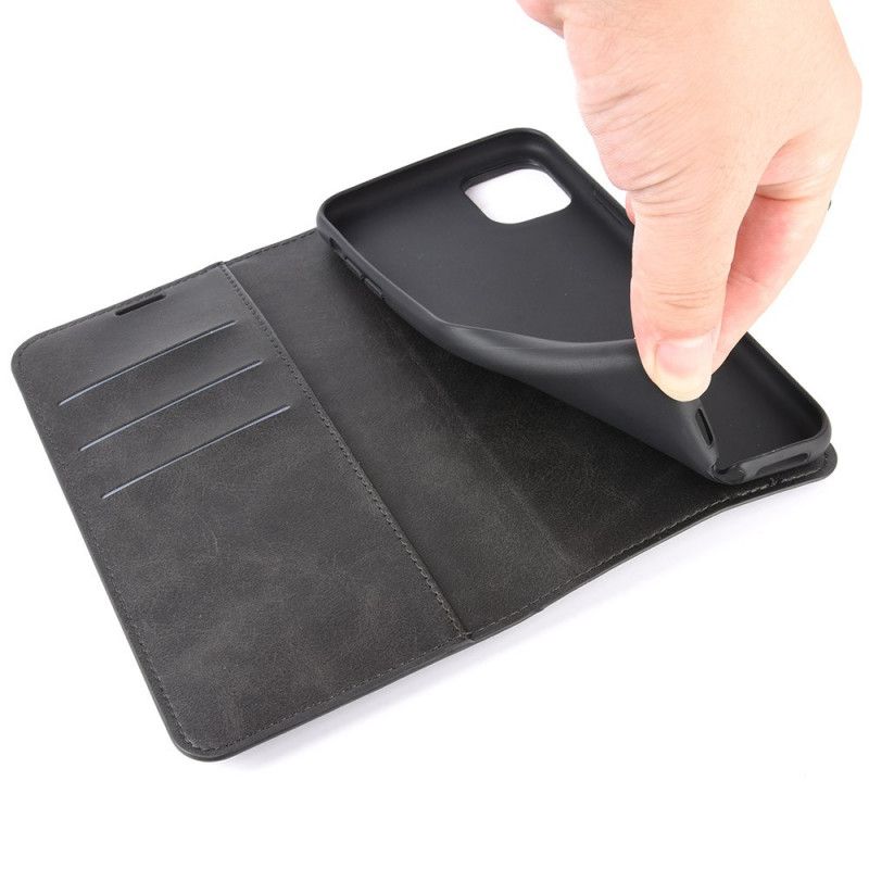 Flip Cover Læder Samsung Galaxy A51 5G Sort Retro Alderen Læder Effekt