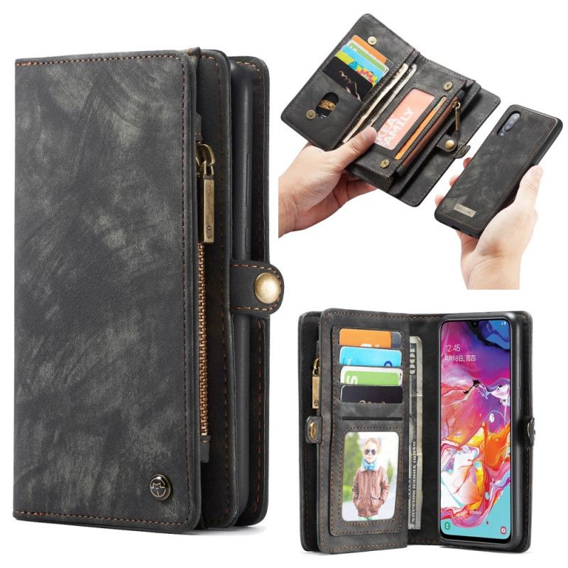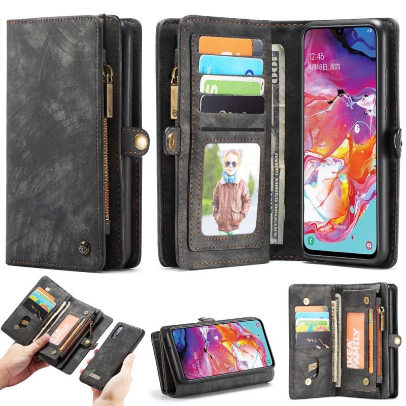 Flip Cover Læder Samsung Galaxy A70 Sort Aftagelig Skal Caseme Beskyttelse
