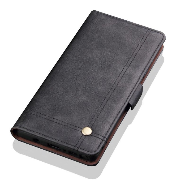 Flip Cover Læder Samsung Galaxy Note 10 Sort Syet Lædereffekt