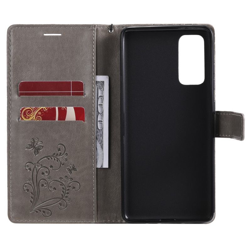 Flip Cover Læder Samsung Galaxy S20 FE Grå Kæmpestore Sommerfugle Original