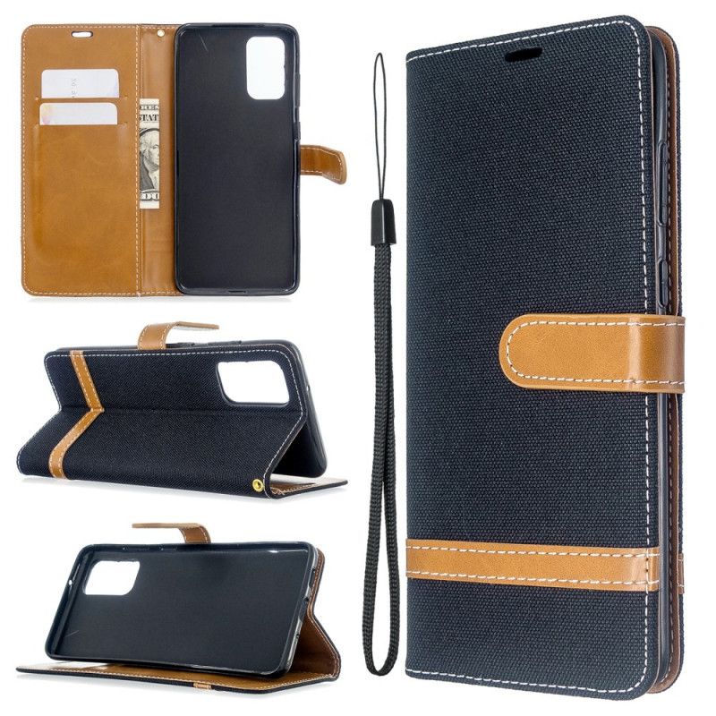 Flip Cover Læder Samsung Galaxy S20 Plus / S20 Plus 5G Sort Stof- Og Lædereffekt Med Rem