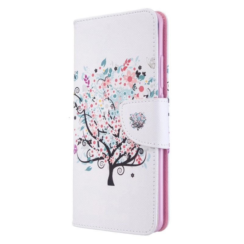Blomstret træovertræk beskytter og tegnebog på Xiaomi Mi Note 10 / Note 10 Pro og fungerer også som en håndfri holder.
