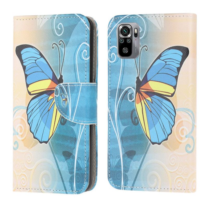Flip Cover Læder Xiaomi Redmi Note 10 / Note 10S Lyseblå Sommerfugle
