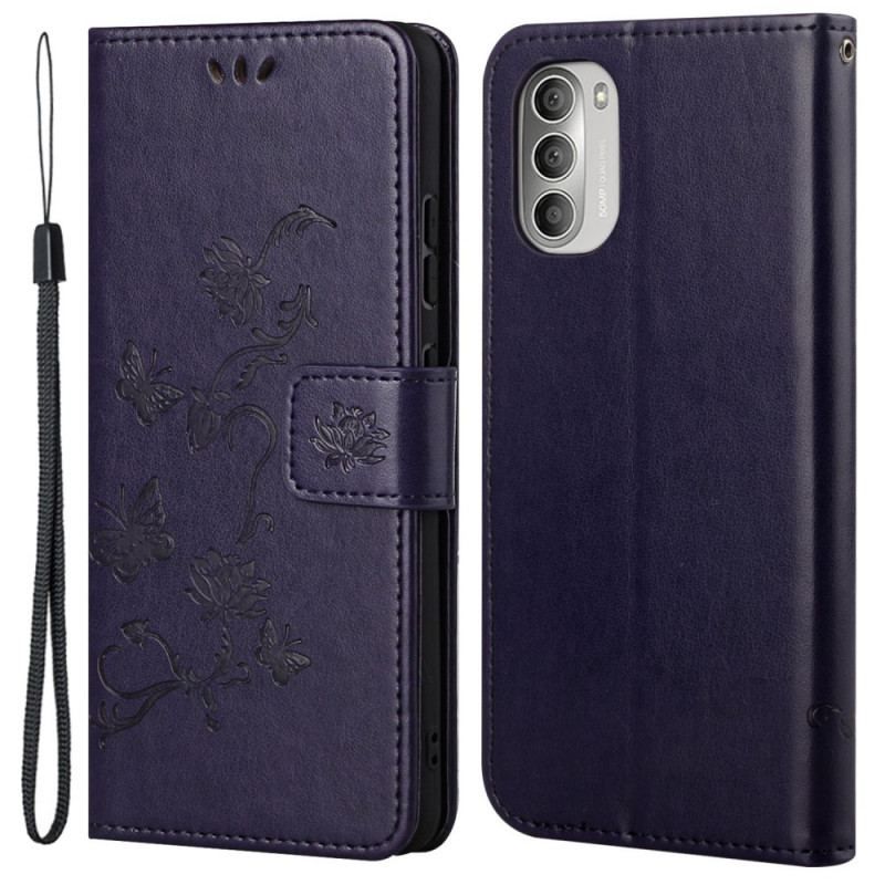 Flip Cover Moto G51 5G Asiatiske Sommerfugle Og Blomster