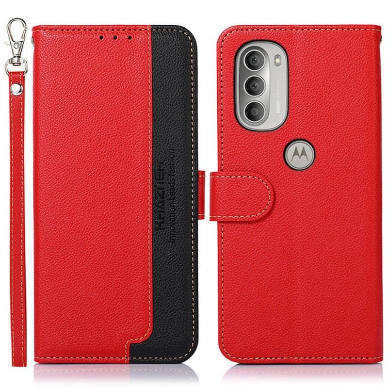Din Moto G51 5G Og Dine Kreditkort Er Fuldstændig Sikre Med Dette Litchi-Stil Cover Fra Khazneh, Som Nyder Godt Af Rfid-Teknologi.